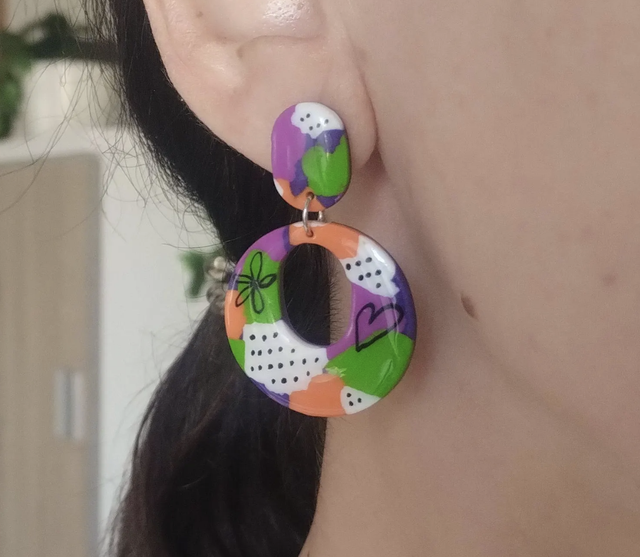 Acabado en resina, estampado mosaico con puntos y decoración Posca