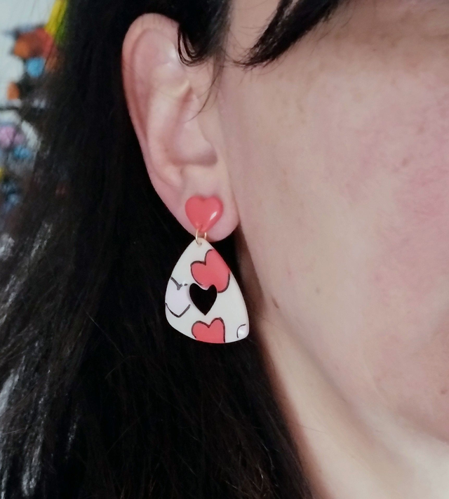 El modelo Dulce combina una base clara con pequeños corazones dibujados a mano, creando un pendiente romántico y luminoso que aporta un toque divertido a cualquier look.